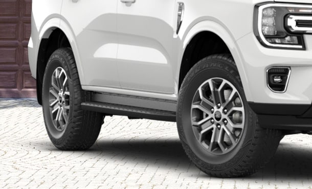Mâm xe hợp kim 18 inch màu đen bạc ánh kim làm tôn lên vẻ tự tin và chắc chắn cho Everest Ambiente.