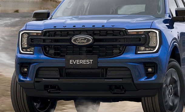 Lưới tản nhiệt, tấm che gầm và ốp bậc lên xuống đều được sơn đen mang đến cho Ford Everest Sport vẻ ngoài ấn tượng và đậm chất thể thao. Chữ ‘EVEREST’ được sơn đen nổi bật trên nắp ca-pô tạo nên nét đặc trưng cho chiếc xe.