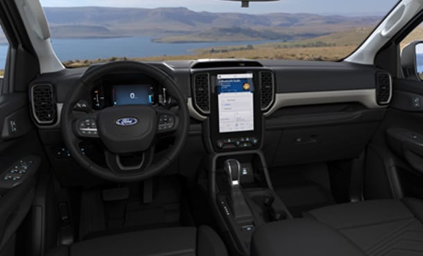 Nội thất màu đen gỗ mun sang trọng kết hợp cùng các chi tiết kim loại sáng bóng tạo nên nét tương phản nổi bật bên trong Ford Everest Sport. Ghế đệm êm ái với logo ‘SPORT’ đặc trưng cho bạn cảm giác thoải mái tối đa trên mọi hành trình.