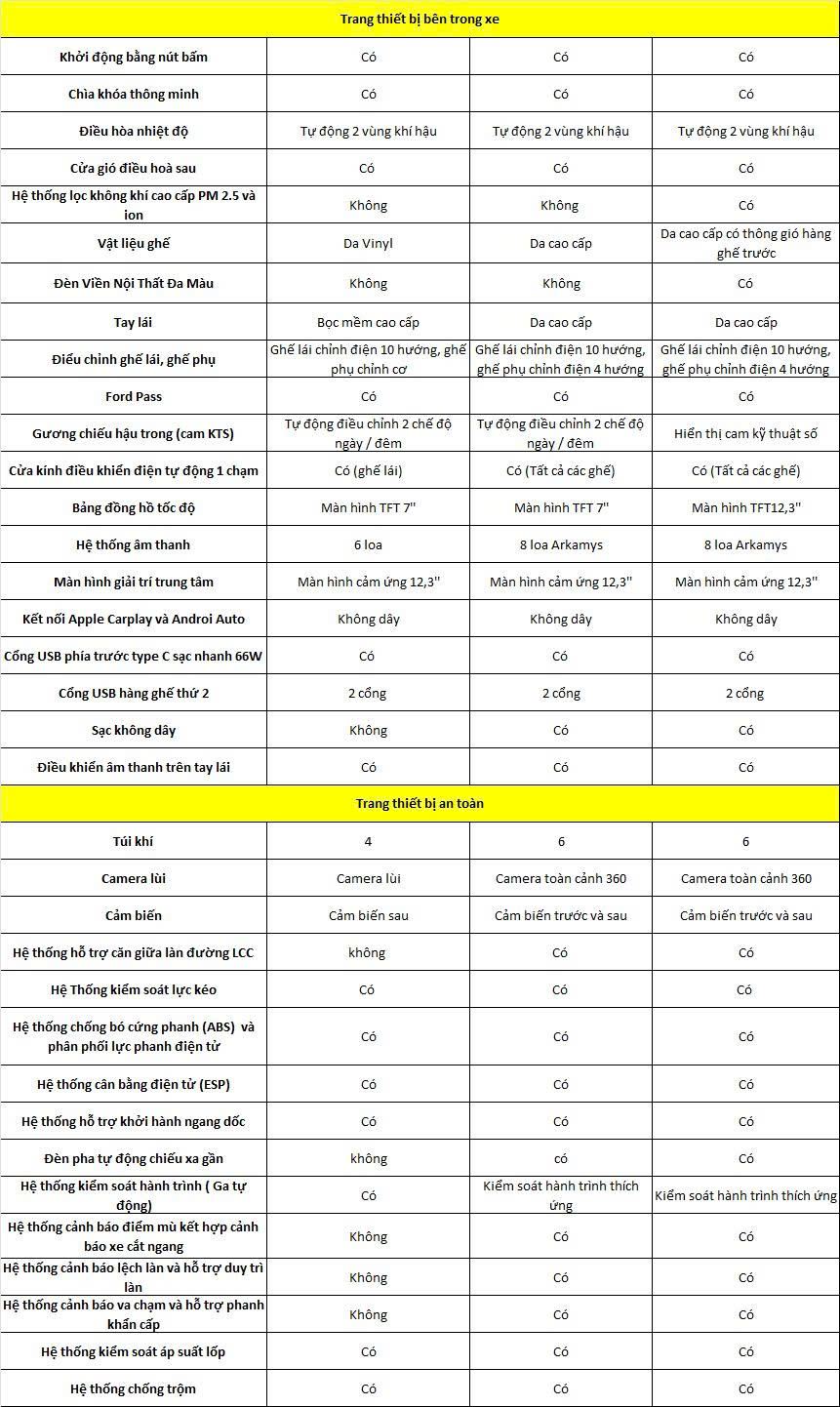 | Động cơ xăng | 1.5L, Ecoboost, I4 tăng áp | 1.5L, Ecoboost, I4 tăng áp | 1.5L, Ecoboost, I4 tăng áp |
